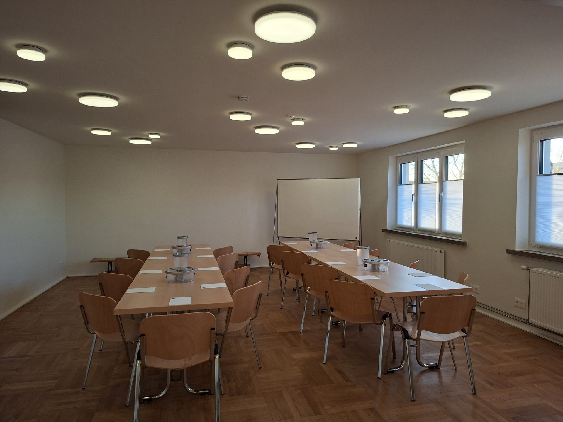 Das Haus bietet Raum für Workations, Teamtage, Workshops, Tagungen, Retreats, Chor- oder Theaterproben, Konzerte, Lesungen und Familienfeiern. Neben sieben individuell gestalteten Gästezimmern stehen großzügige Gemeinschaftsbereiche, eine voll ausgestattete Gastroküche, 2 Teeküchen, mehrere flexible Arbeits-, Seminar- und Proberäume sowie ein großer Saal mit Bühne für Bewegung, Musik und Begegnung und eine Bar zur Verfügung. Alle Räume sind hell, offen und wandelbar – perfekt für Gruppen, die Inspiration und Austausch suchen.