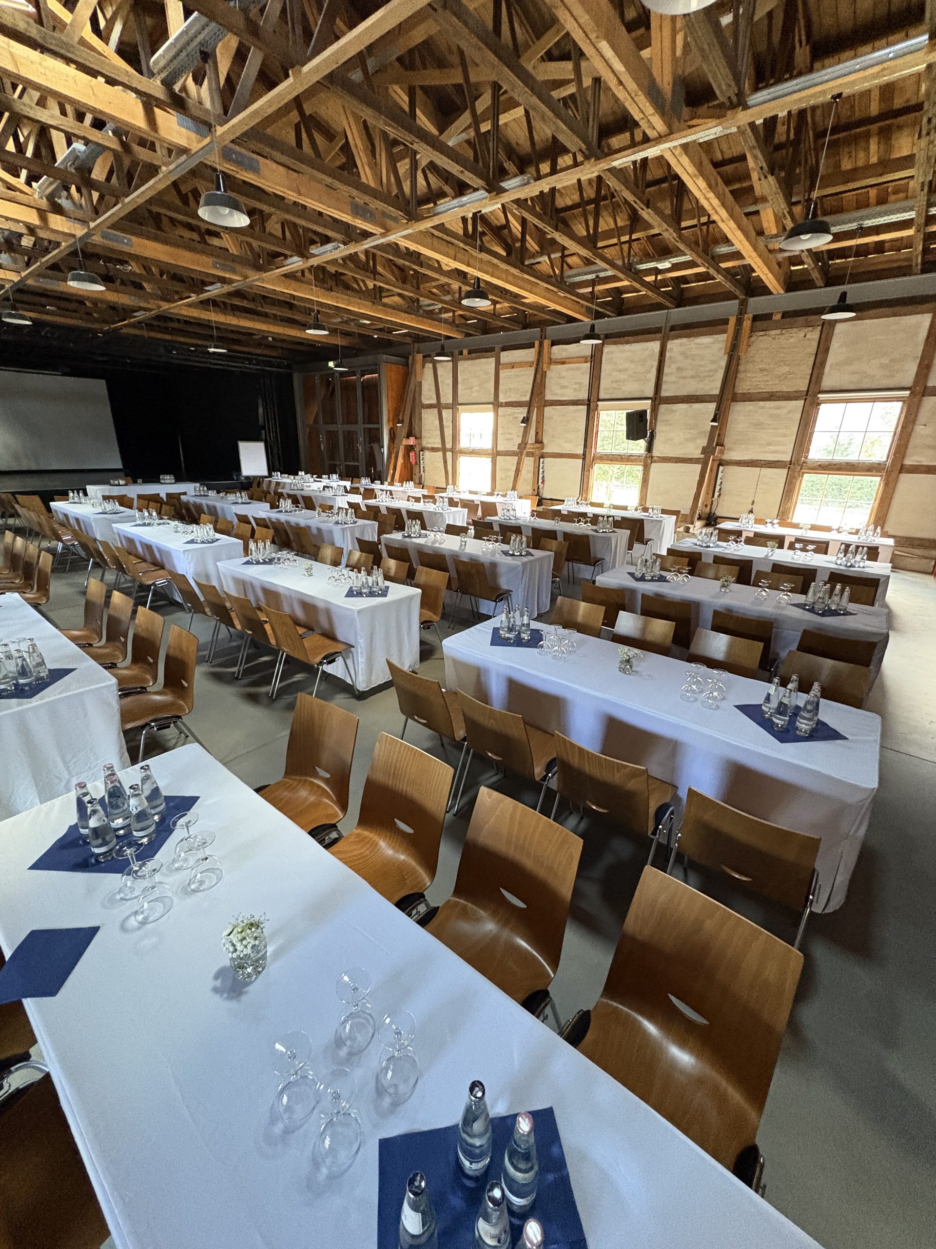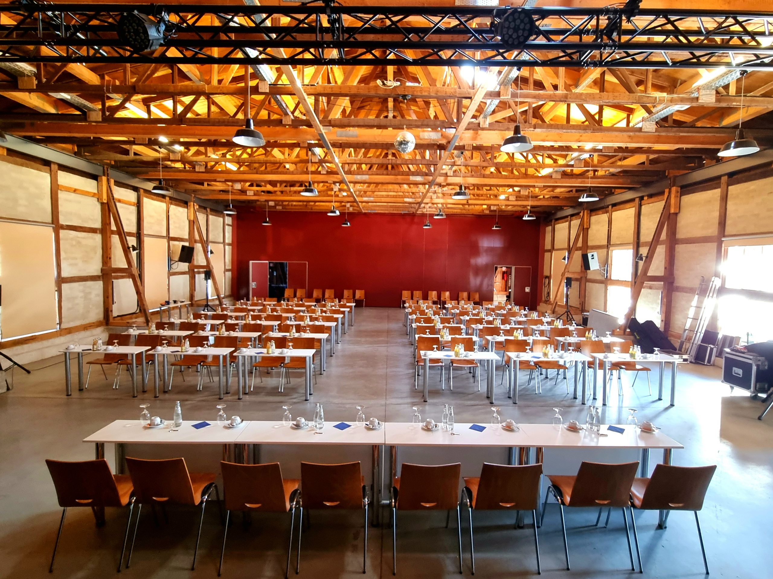 Die Scheune hat viele Möglichkeiten zur Durchführung von unterschiedlichsten Veranstaltungen, wie Kultur, Tagungen, Betriebsversammlungen und Vorträgen . Hier finden z.B. bei Konzertbestuhlung 400 bis 450 Personen Platz. Andere Bestuhlungsformen je nach Anlass (z.B. Bankett) sind ebenfalls möglich. Gerne unterbreiten wir Ihnen einen Vorschlag zu Ihrer Veranstaltung mit unseren Möglichkeiten.