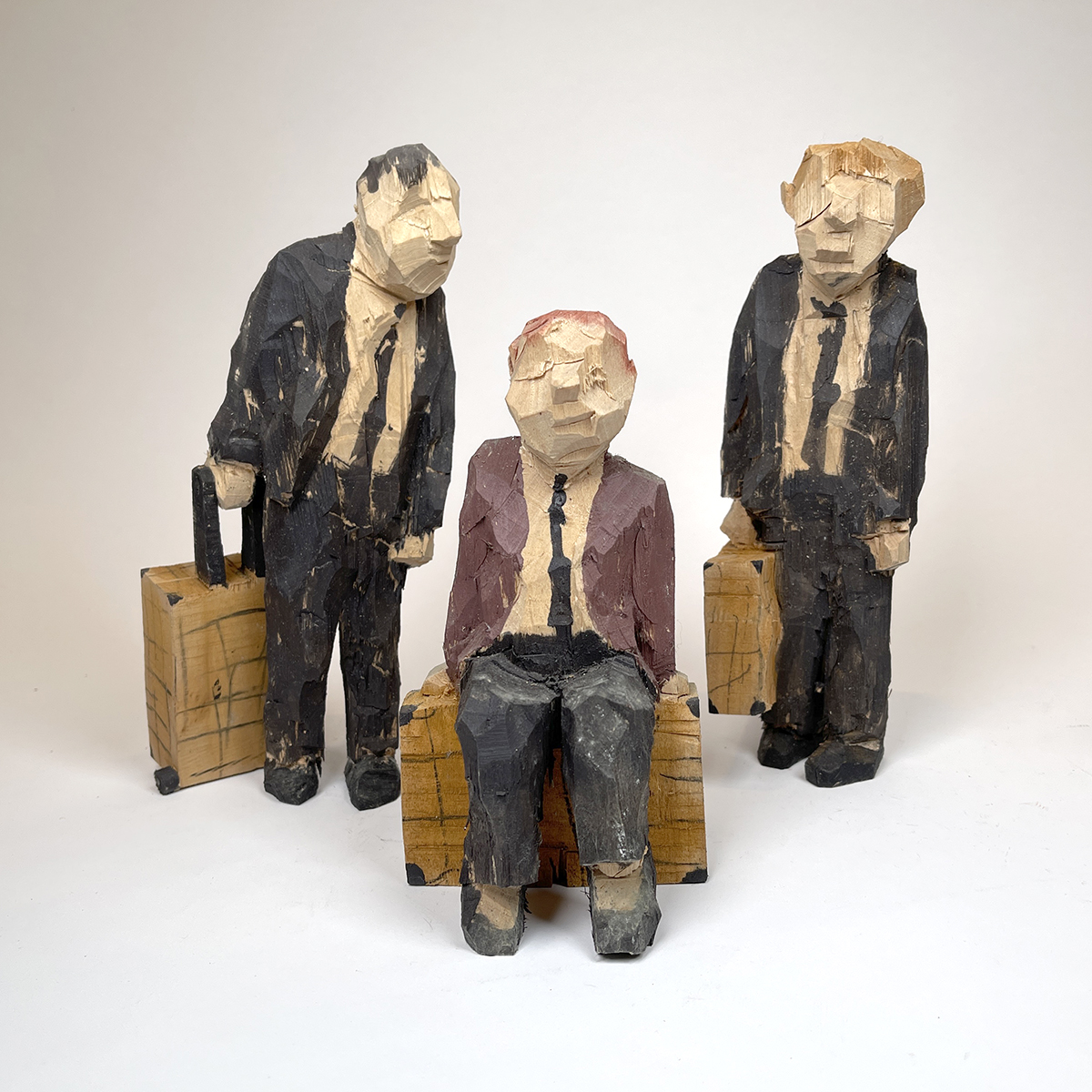 Der Hamburger Künstler Georg Schulz (*1952 †2025) kam über die Arbeit als Möbeltischler zu seiner Leidenschaft, Charaktere in Holz zu hauen. Die Beobachtungen, die sich später in seinen Skulpturen wiederfinden, sammelte er im Alltag. Jede einzelne Skulptur verblüfft durch die einfache, aber äußerst treffende Darstellung menschlicher Eigenheiten. Obgleich Georg Schulz eher grob arbeitet, scheinen diese skurrilen Figuren in allem Nuancenreichtum zu leben. Und ganz ähnlich, wie es gute Karikatur zu leisten vermag, halten sie dem Betrachter liebevoll einen Spiegel seiner Schwächen vor.