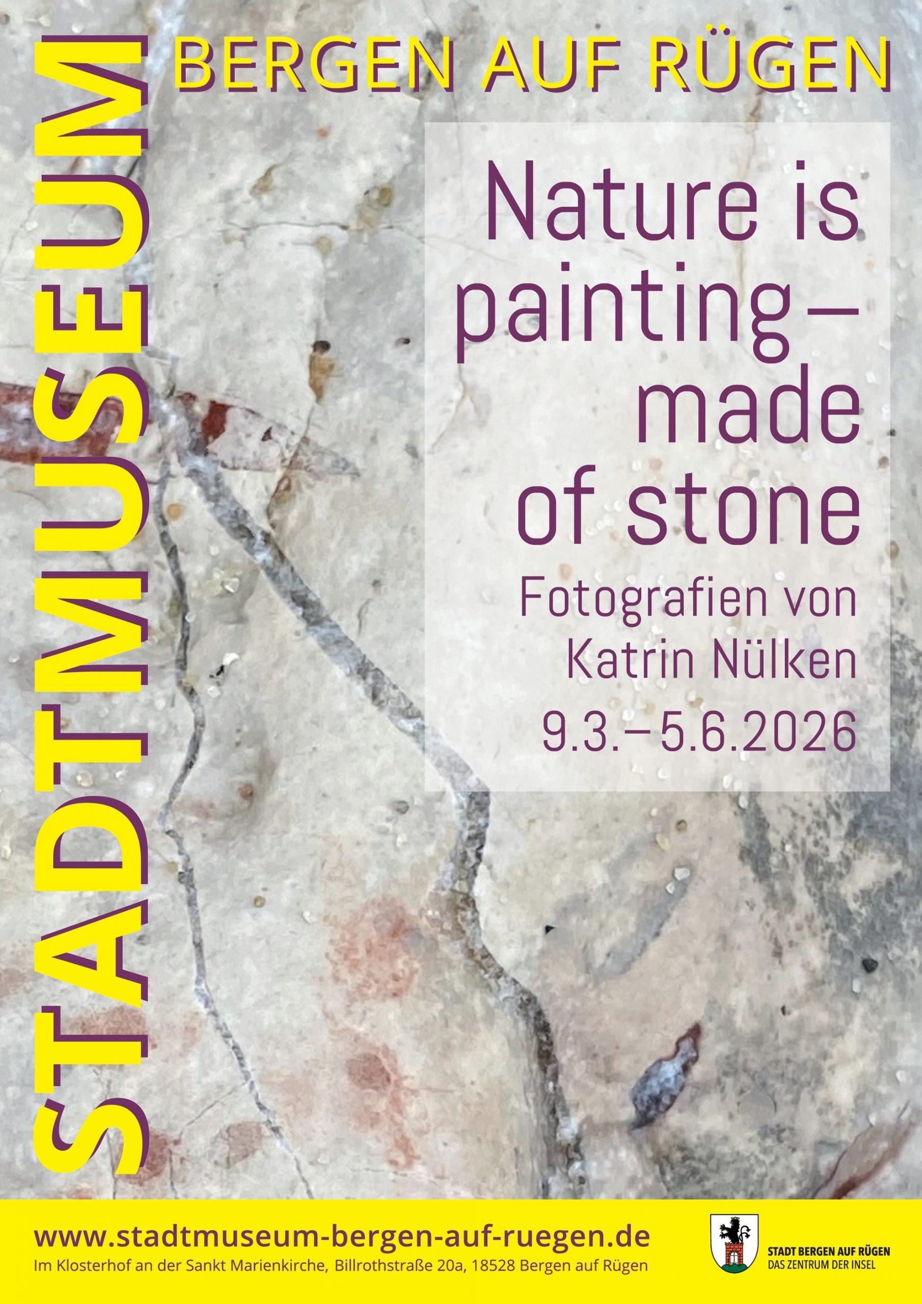 Zum Internationalen Museumstag führt die Bergener Künstlerin Katrin Nülken am 17. Mai, 11 Uhr in einem zwanglosen Rundgang durch die Fotoausstellung Nature is painting – made of stone. Im persönlichen Austausch teilt sie ihre Faszination für Steine und eröffnet neue Blickwinkel auf deren verborgene Schönheit.